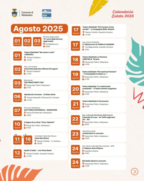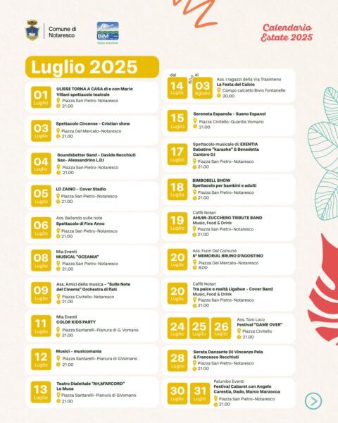 maggiori dettagli sugli eventi sulla pagina Facebook del Comune di Notaresco
